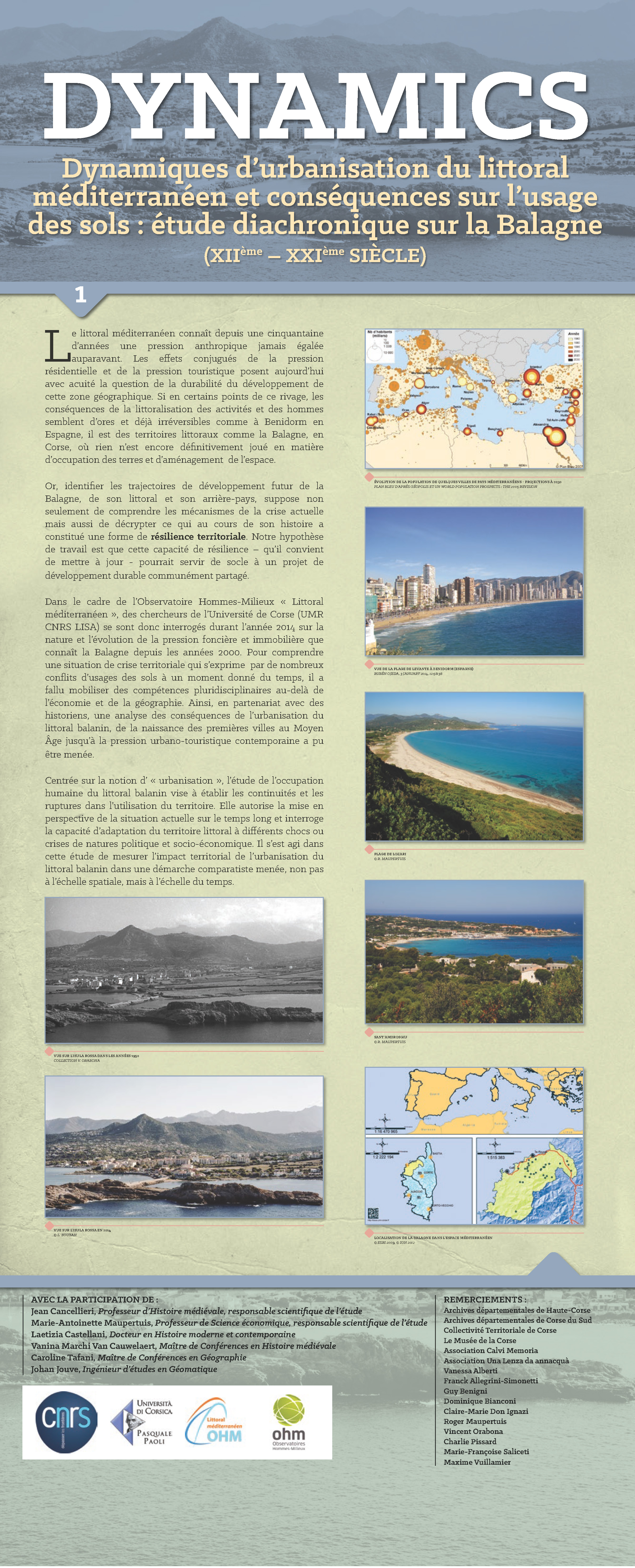 Dans le cadre des appels à projets de recherche 2013 de l’OHM Littoral méditerranéen, l’exposition a vocation à présenter les faits saillants issues de l’Analyse dans le temps long des conséquences de l’urbanisation du littoral balanin, de la naissance des premières villes au Moyen Âge jusqu’à la pression urbano-touristique contemporaine.